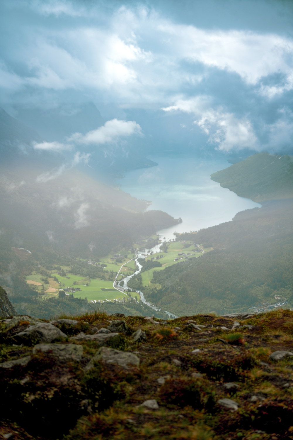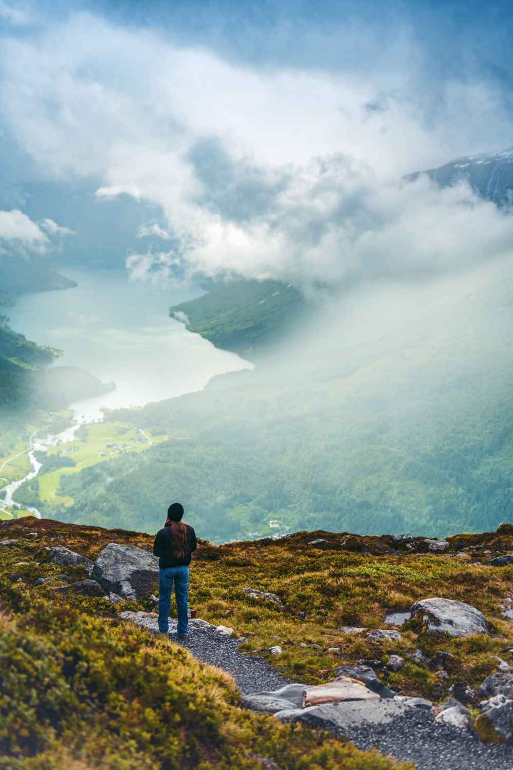 Von Nordfjordeid aus startete unser Ausflug zur Loen Skylift – mit dem Bus zur Talstation und dann mit der spektakulären Seilbahn auf den 1.011 Meter hohen Hoven. Die Fahrt dauert keine fünf Minuten, aber die Aussicht oben ist kaum in Worte zu fassen: Weite, Ruhe, ein Blick über Fjord, Berge, Wälder. Und das bei norwegischem Sommerwetter – also: kühl, neblig, mystisch. Oben blieb genug Zeit für einen Spaziergang, ein paar Fotos, einen Tee mit Aussicht. Auch wenn man spürt, dass dieser Ort für Touristen gebaut wurde: Er hat etwas Berührendes.